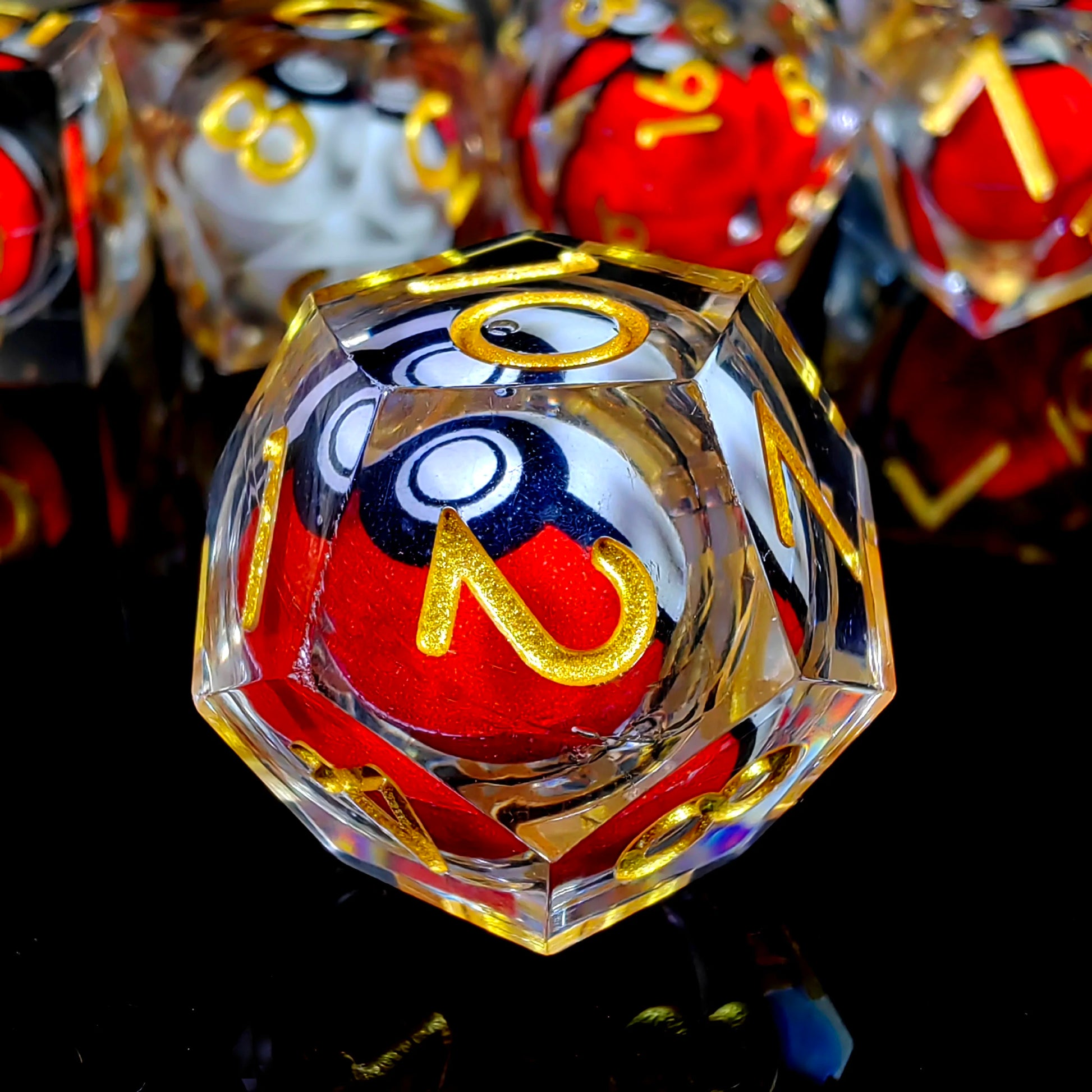 The Artificer's Capture Forget mundane number cubes. These handcrafted, sharp-edged resin dice are a testament to precision and passion. Each set is a unique creation, encasing a perfectly formed Poké Ball at its heart. Feel the weight of possibility in your hand as you prepare to send forth your luck.